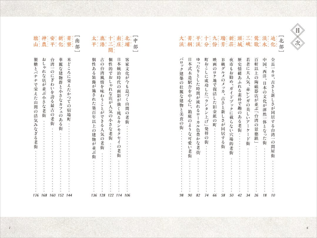 ・南部菁寮 米どころに栄えたかつての宿場町新化 華麗な建物群と小さなカフェのある街安平 台湾一のにぎわいを誇る最古の老街神農 おしゃれな店が並ぶ小さな老街旗山 製糖とバナナで栄えた山間の活気みなぎる老街