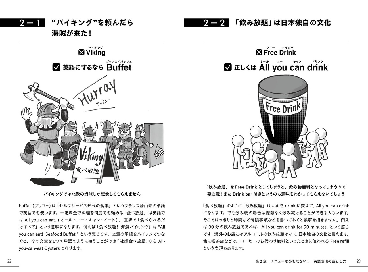 本書には、クスッと笑える誤訳例と、外国人が「これをください!」と注文したくなる正しい英語表現を約1200種類掲載! さらに、英語が苦手な人でも安心できる工夫も満載です。