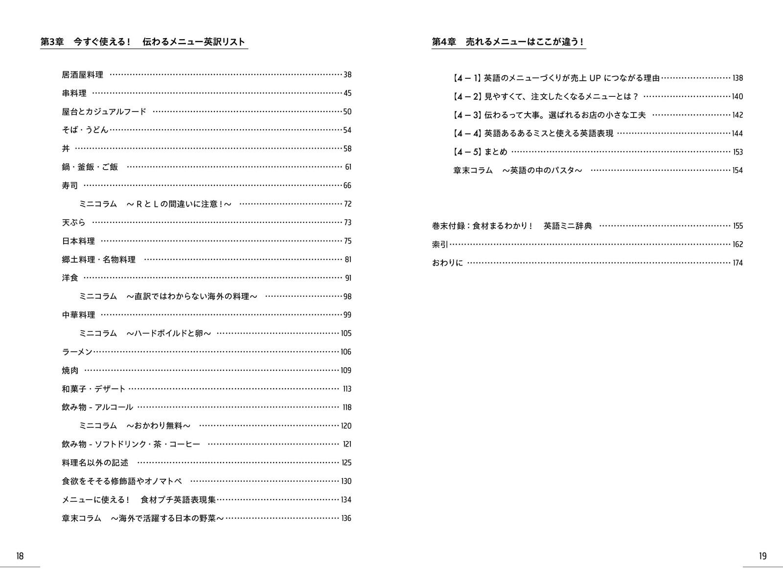 目次第1章 英語圏の人がびっくりする!ありがち英訳ミス集【メニュー編】第2章 メニュー以外も危ない!英語表現の落とし穴第3章 今すぐ使える!伝わるメニュー実用リスト第4章 売れるメニューはここが違う!巻末付録:食材まるわかり 英語ミニ辞典