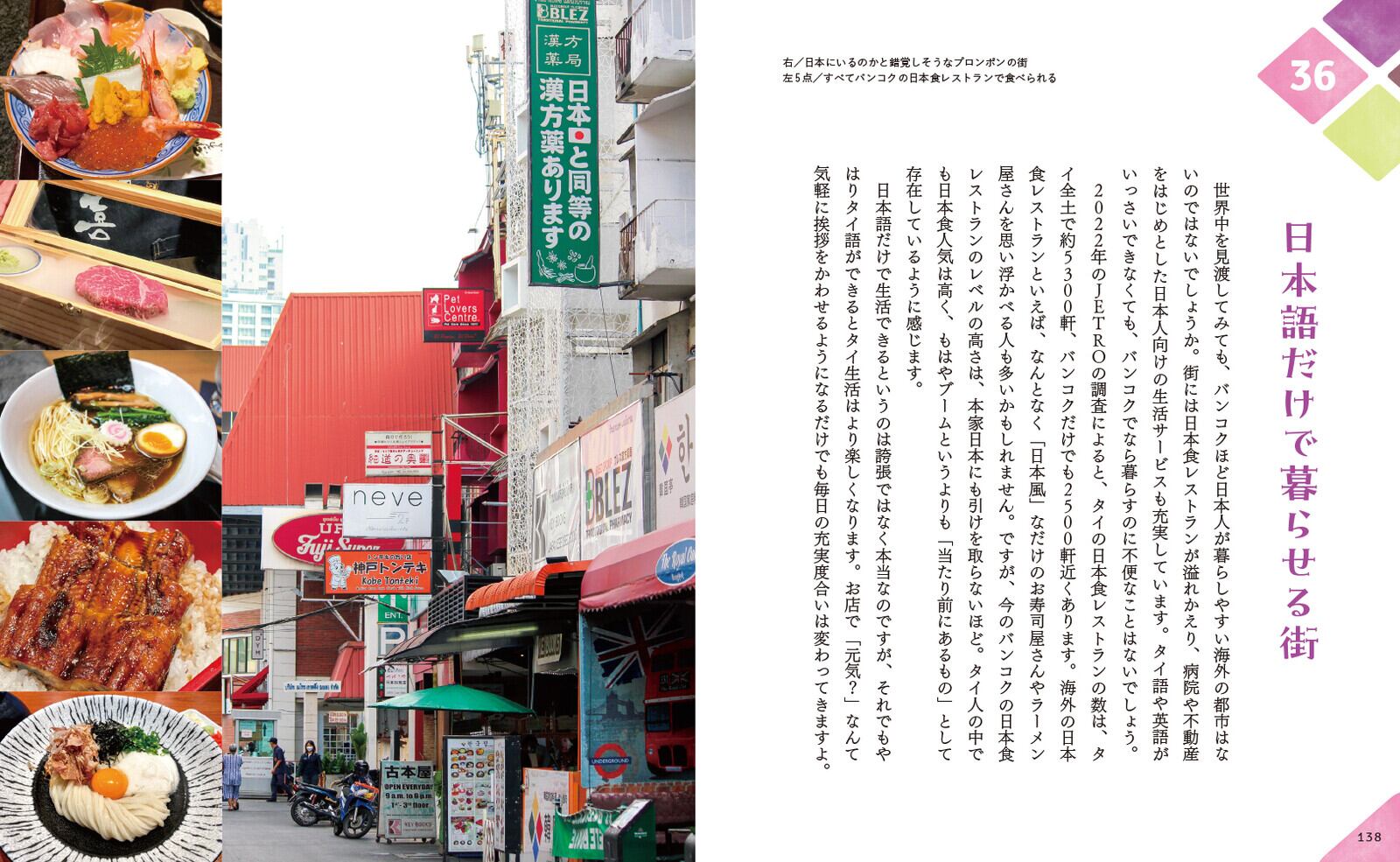 人に興味を持ち、気軽に手を差し伸べる。社会全体で子どもを大切にする。本名を知らなくてもニックネームで呼び合う。血液型より曜日で占いをして、大事なことを決める。接客は座ったままでいい。汁物もパンパンの袋で持ち帰り、食堂では自分で調味料を使いこなして味変を楽しむ。四季はないけど旬のフルーツで季節を感じとる。そんな、日本でも見習いたい考え方から、タイならではのユニークな風習まで、衣食住さまざまな角度からタイ暮らしの魅力を探ります。